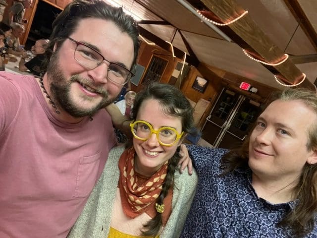 Fiddle tunes, folksongs and fancy footwork from John Kirk, Trish Miller and Joel Rosenberger. Americana and Celtic styles are featured in their repertoire with harmony singing and splashes of humor sprinkled in their dance calling and music workshops.