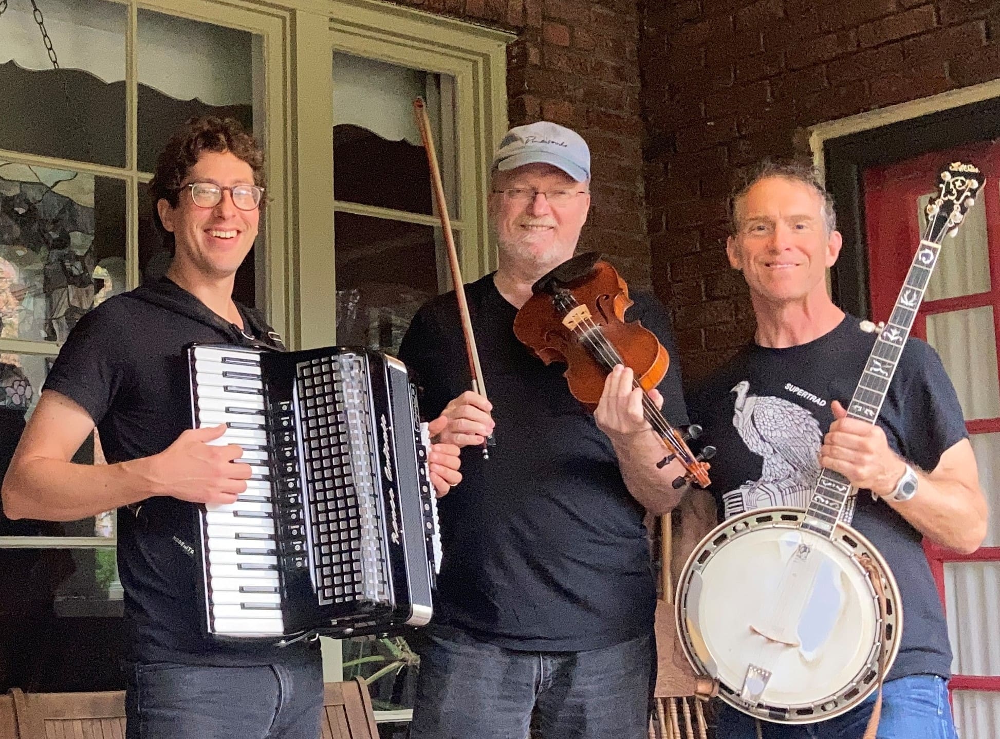 Sam Bartlett and Eric Schedler of Bloomington, Indiana are a tour de force of traditional dance music and the finest accordion/banjo duo in the Midwest. Though they are steeped in the subtle intricacies of the old Irish and New England tune traditions, they play with a groove and persistence that is timeless. Bartlett grew up in the contra dance world of rural Vermont and was an early member of Wild Asparagus and the Clayfoot Strutters, two bands that reshaped the sound of contra dance music. He has played for community dances for the past 40 years, and also performs with the Stringrays and Notorious. As an Oberlin Conservatory harpsichordist, Schedler began learning and composing tunes on the accordion, finding his training to give him an unusual facility on that instrument. He is also a member of Chicago’s favorite contra dance band, the Cosmic Otters. Teaming up with Boston-based fiddler and guitarist Dave Langford, Supertrad, becomes SUPERTRAD. Langford, the fiddling fire behind The Latter Day Lizards and Stomp Rocket, has played for countless dance weeks and weekends all over the US and beyond, combining multiple styles of fiddle playing with fierce energy and drive.