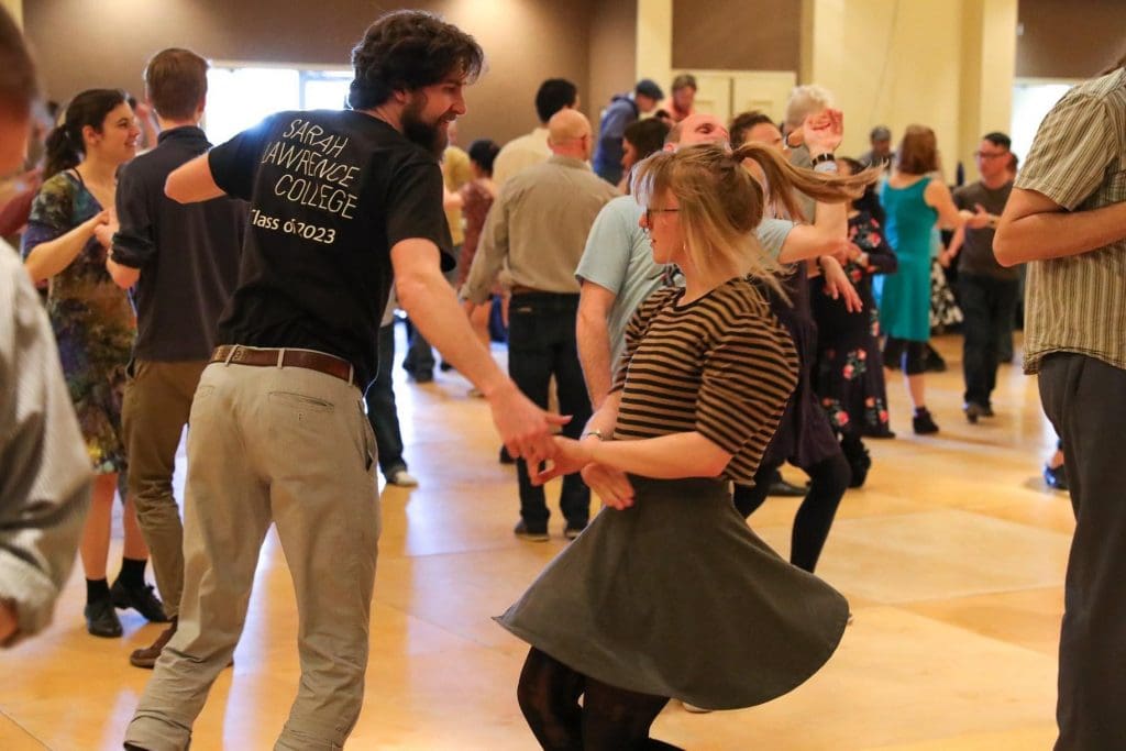 Dances are informal, participatory, and appropriate for singles and couples — you never need to attend with a partner for partner dances, and you will change partners between dances in many of the sessions. Dress is casual and comfortable, with soft-soled shoes preferred. Whether you’re a seasoned dancer or musician, love to experience new types of dance, learn new musical tricks, or just enjoy listening to fantastic tunes among friends, there’s something for everyone to enjoy at the Flurry!