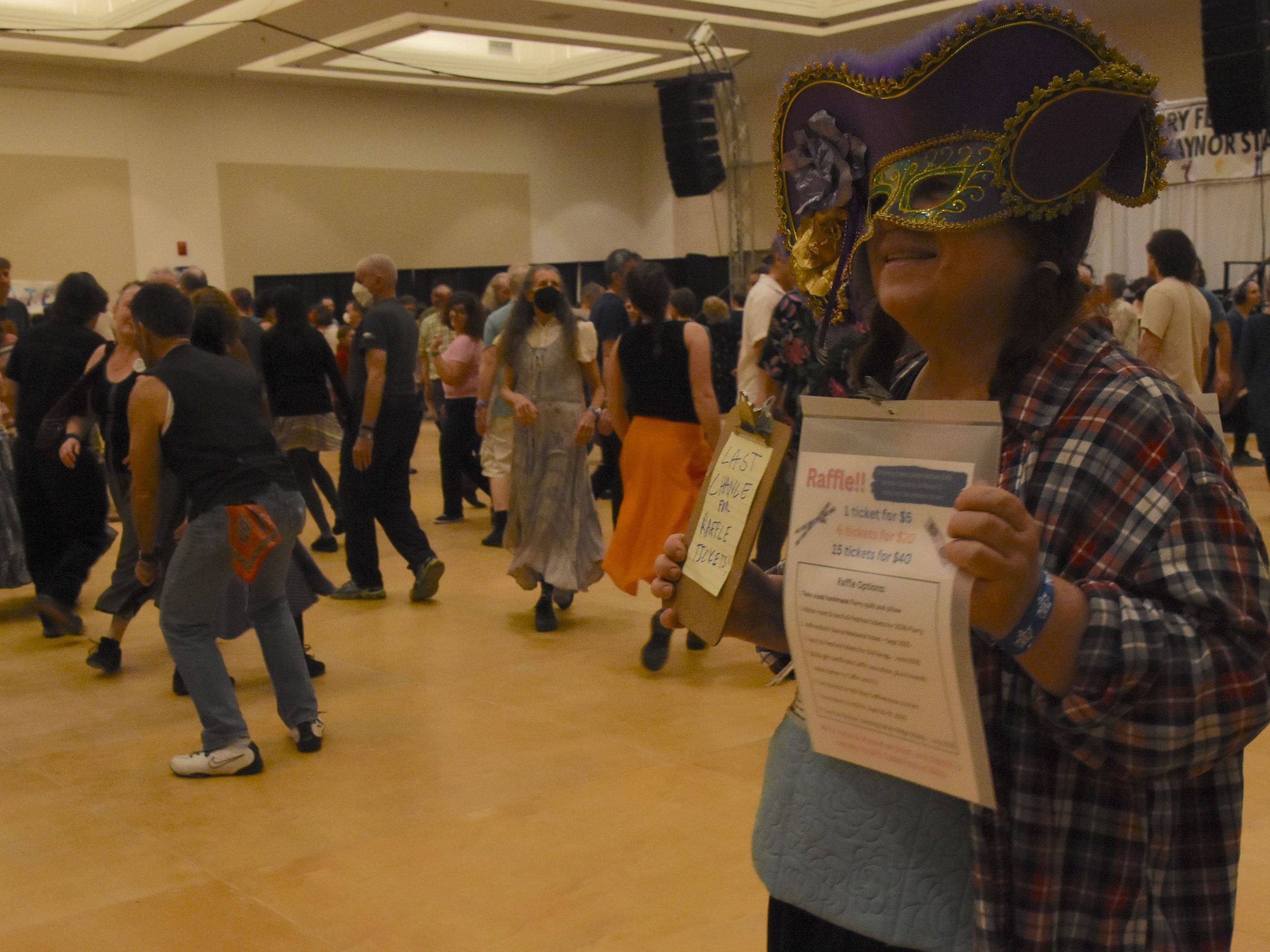 The drawing takes place on Sunday afternoon, and you do not need to be present to win. Tickets can be purchased cash or credit on-site at the DanceFlurry Organization Table, Festival Store, or from roving raffle sales crew members during mealtimes. Tickets are also available for purchase on the advance ticket form, and will be completed for you and ready for pickup with your wristband.